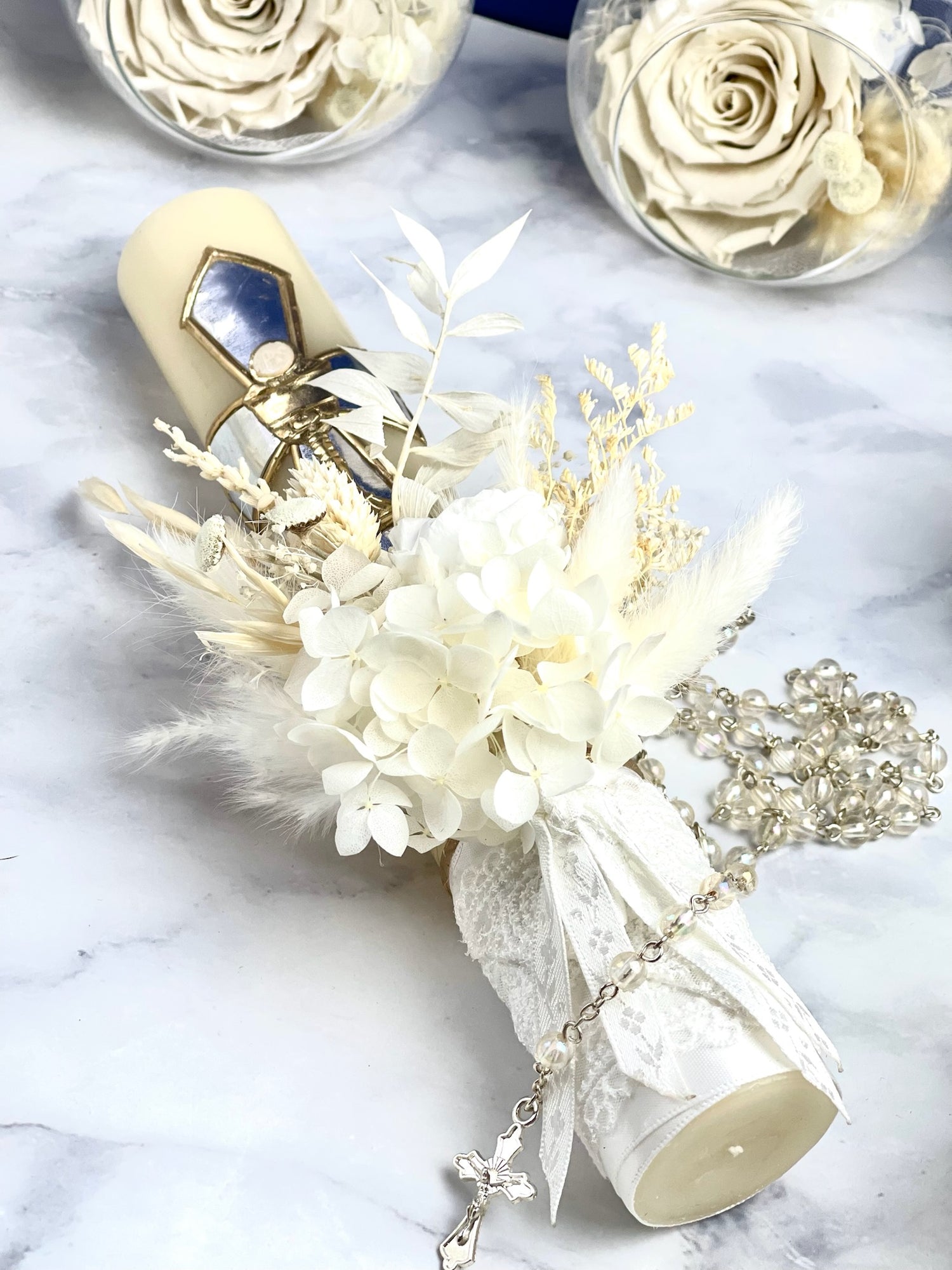 Not only did we provide the candle for this special day, we also inlcuded the rosary of their liking!